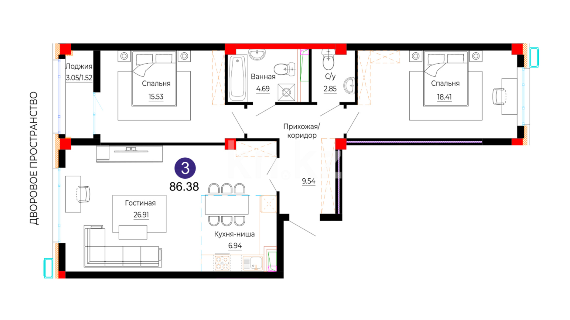 Общественные пространства комплекса выполнены с особым вниманием к деталям. Дизайнерский холл с мягкой зоной ожидания создаёт ощущение уюта и статуса с первых шагов. Бесшумные лифты, электронные замки и система безопасного доступа по Face ID обеспечивают комфорт и высокий уровень безопасности. Для активного образа жизни предусмотрена workout-зона на территории комплекса.