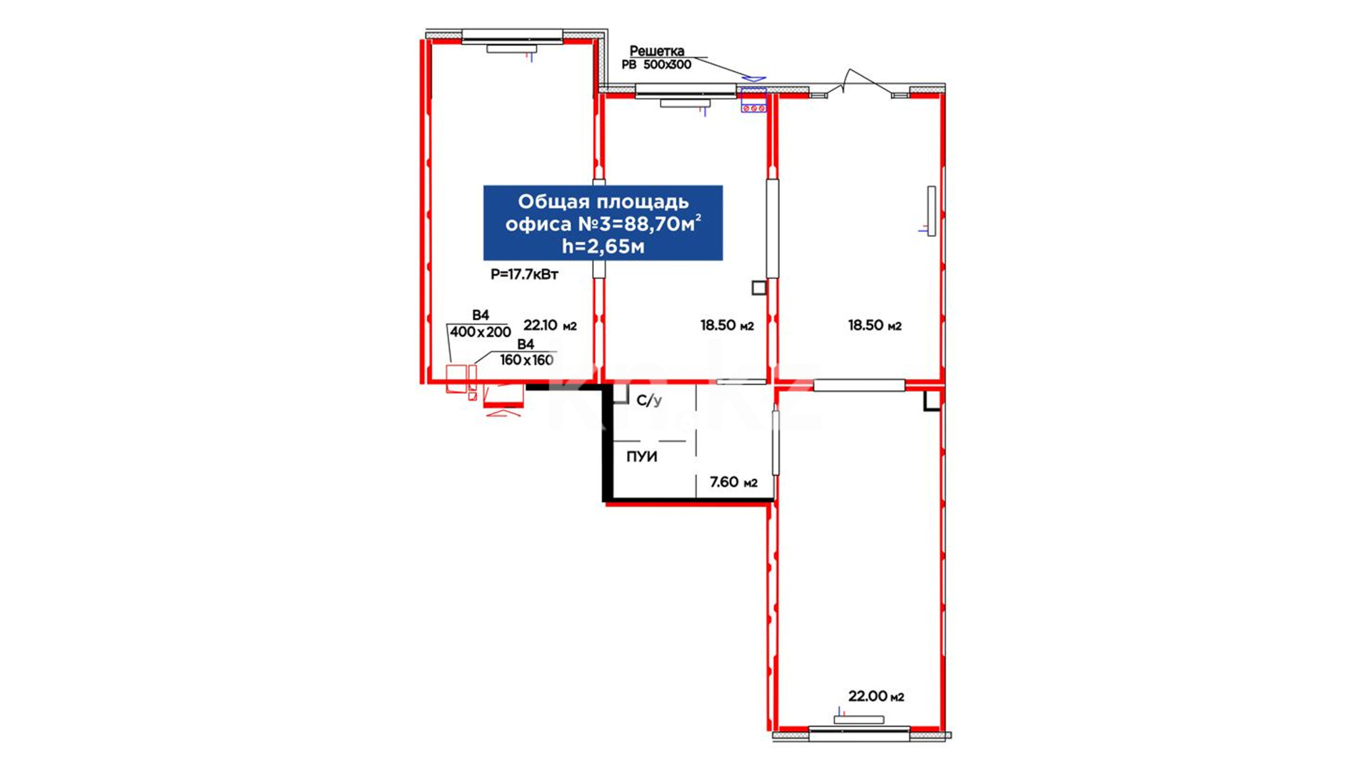 Высота потолков: 2.65 м