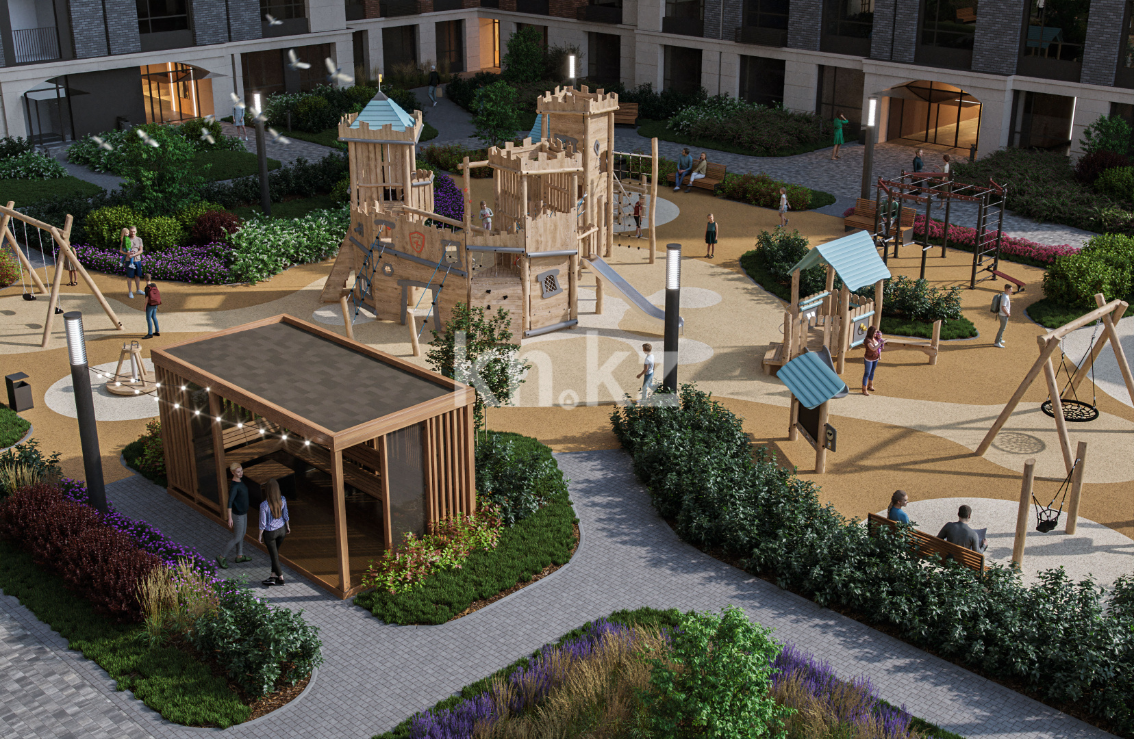 • современные детские игровые площадки (песочницы, качели-гнезда, горки, доски для рисования);