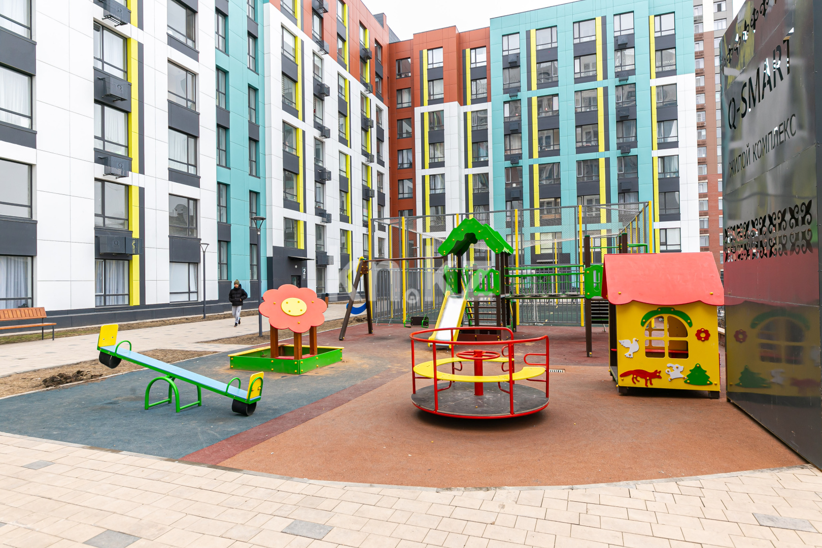 ЖК Q-Smart – современный дом из 4 секций высотой 9 этажей. Фасад оформлен в современном стиле и отделан: