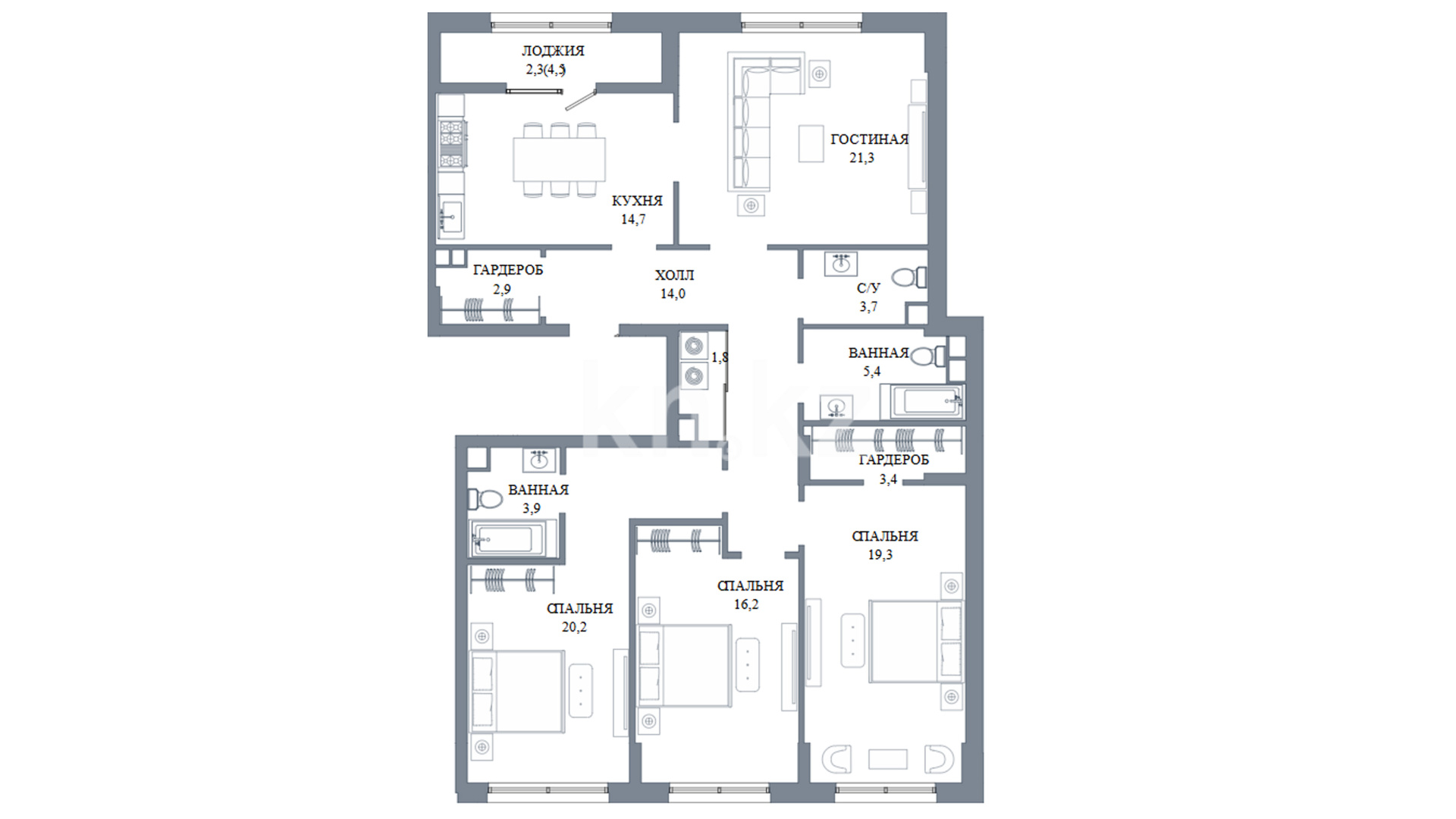 Высота потолков: 3 м
