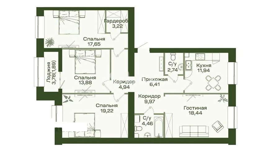 Комплекс представляет собой 9-этажные жилые здания с просторными квартирами. В строительстве используются качественные современные материалы: фасад оформлен алюминиевыми композитными панелями, межквартирные стены выполнены из керамического пустотелого кирпича, а межкомнатные — из газоблока. В квартирах предусмотрена предчистовая отделка и центральное отопление.