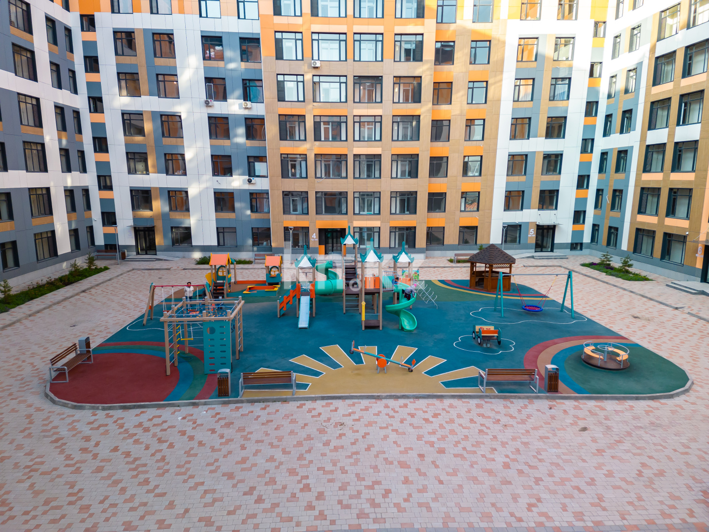 - яркие детские площадки,