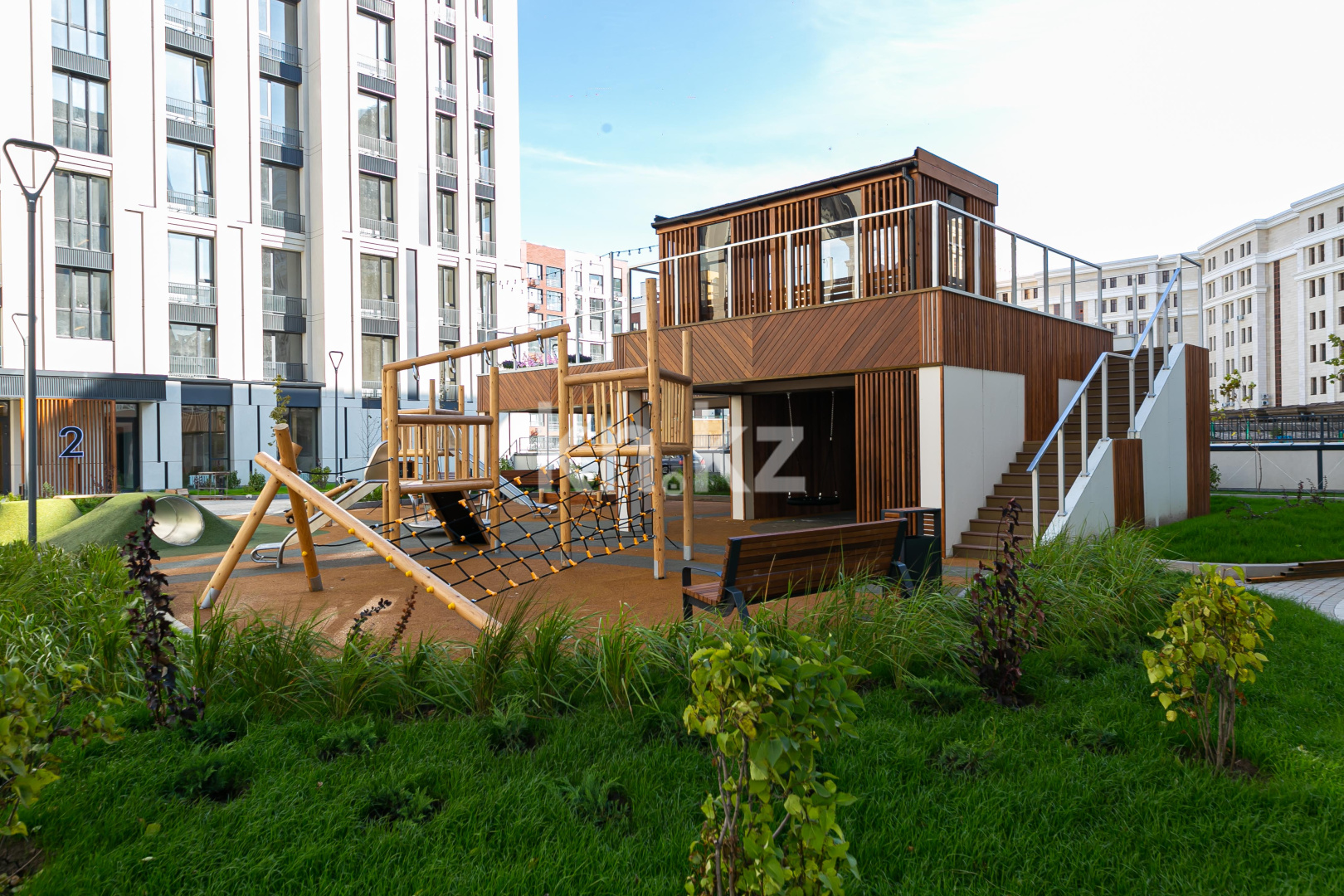 - современная безопасная детская площадка (зонирование по возрасту);