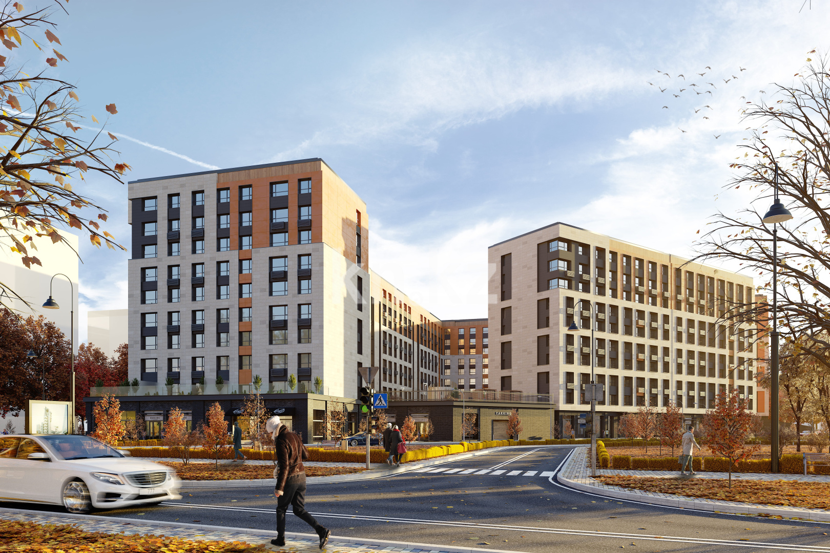 В комплексе предусмотрен подземный паркинг и гостевая наземная парковка.