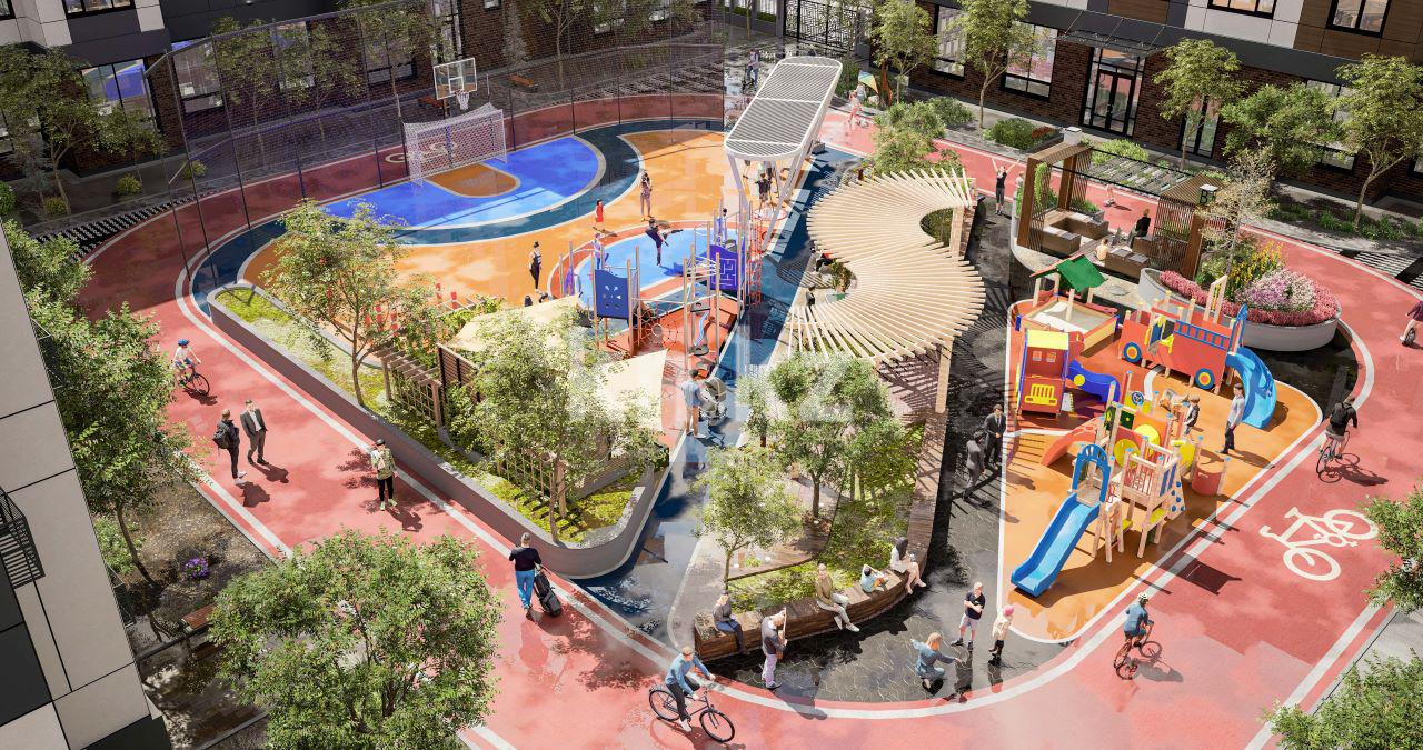 Территория комплекса закрыта и охраняется, оборудована системой видеонаблюдения. Для жителей предусмотрены детская площадка, зоны отдыха, асфальтированные подъезды и собственная парковка. На первых этажах размещаются коммерческие помещения, обеспечивающие доступ к повседневным услугам. Район отличается спокойной атмосферой и подходит для семейного проживания.