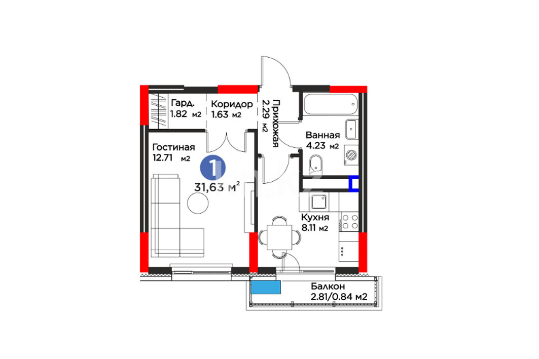 Высота потолков: 2,7–3 м