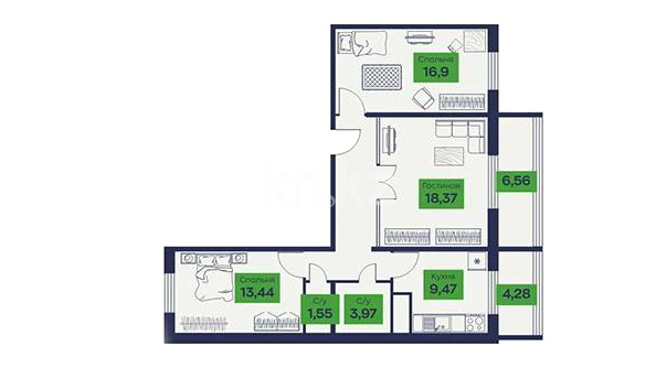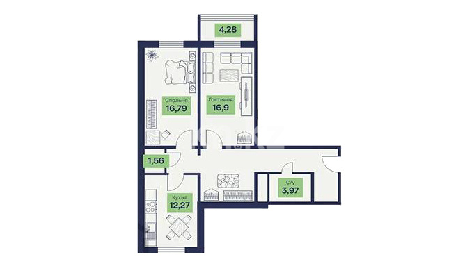 Высота потолков: 2.7 м
