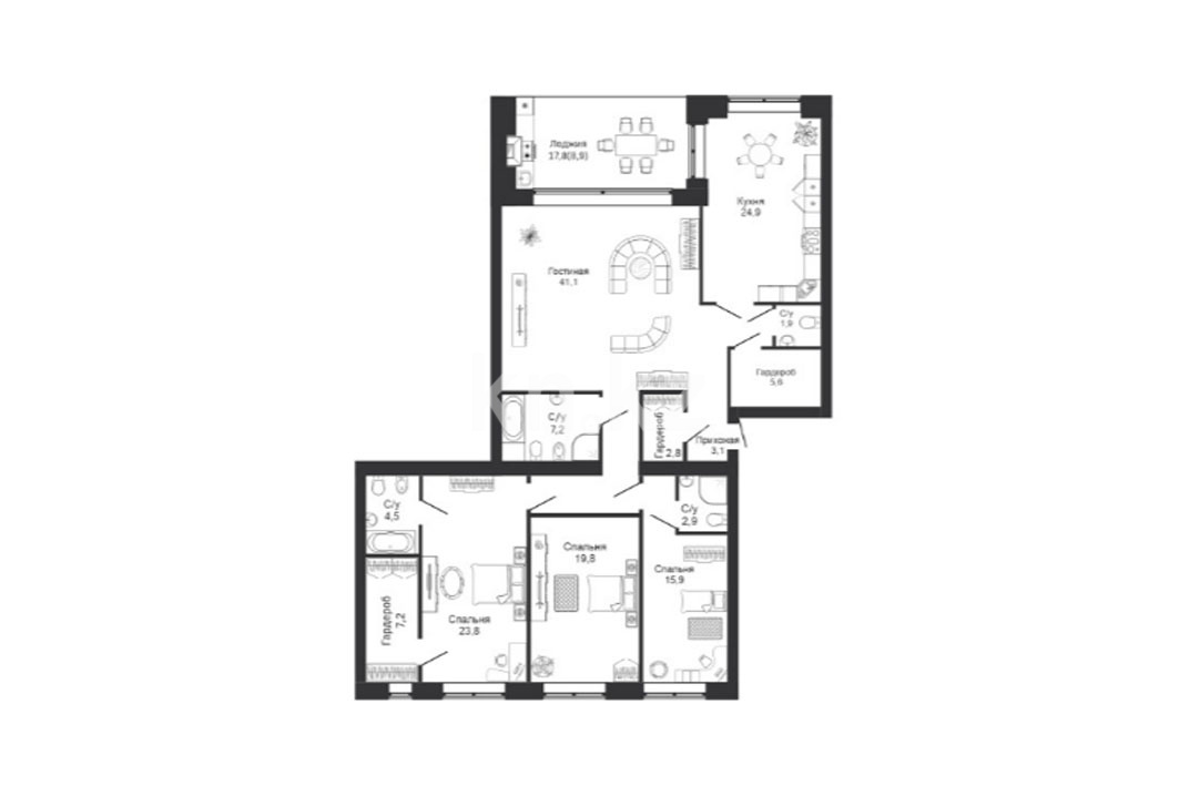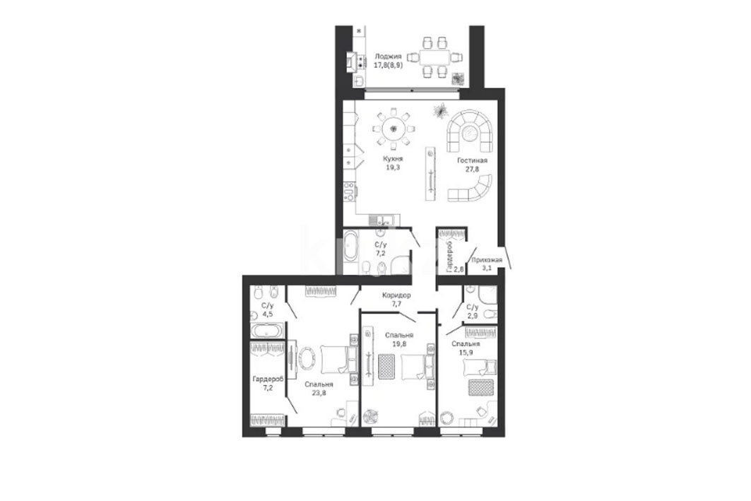 Высота потолков: 3 м
