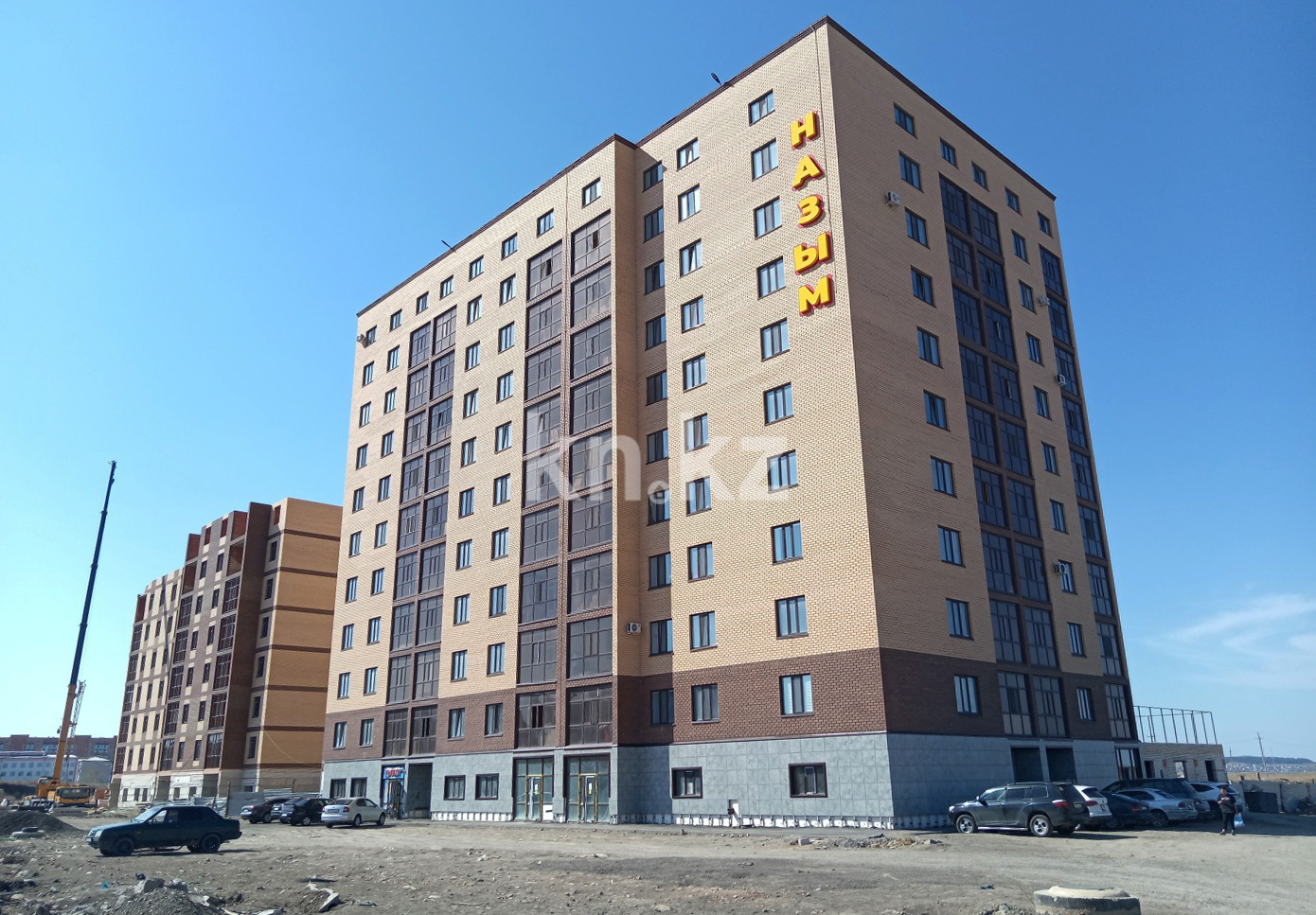 ЖК Назым представляет собой кирпичное девятиэтажное здание из 3 секций. Фасад облицован керамическим кирпичом, оформление выполнено в современном дизайне с контрастным декором. Внутри дома всё сделано для удобства и комфорта: хорошая тепло- и звукоизоляция, современные материалы, бесшумные лифты. В подъездах и на лестницах установлены камеры, которые работают круглосуточно.
