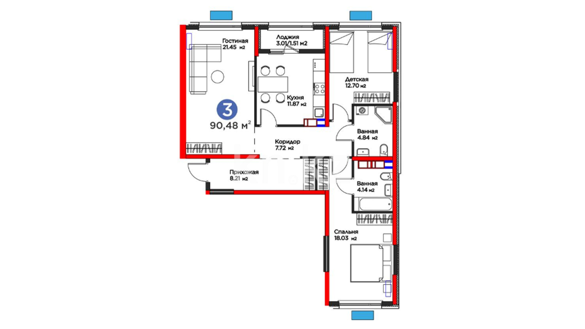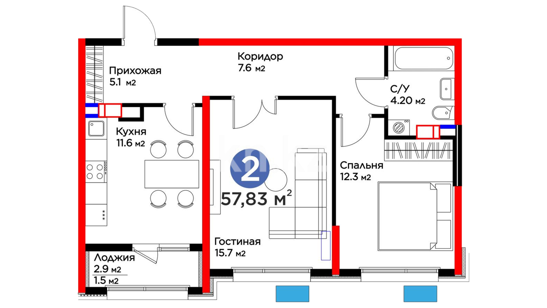 Высота потолков: 2.7 м