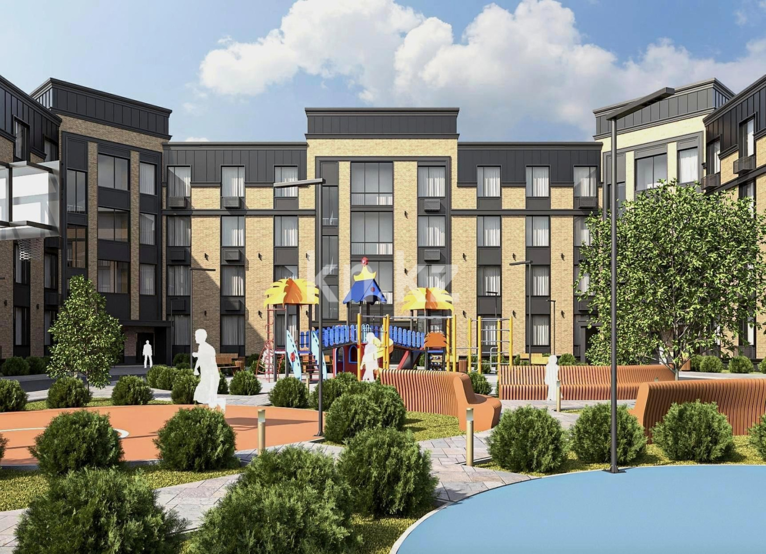 Двор Parasat Residence - это закрытое пространство для тех, кто ценит спокойствие и безопасность. На территории комплекса будут установлены современные системы безопасности.