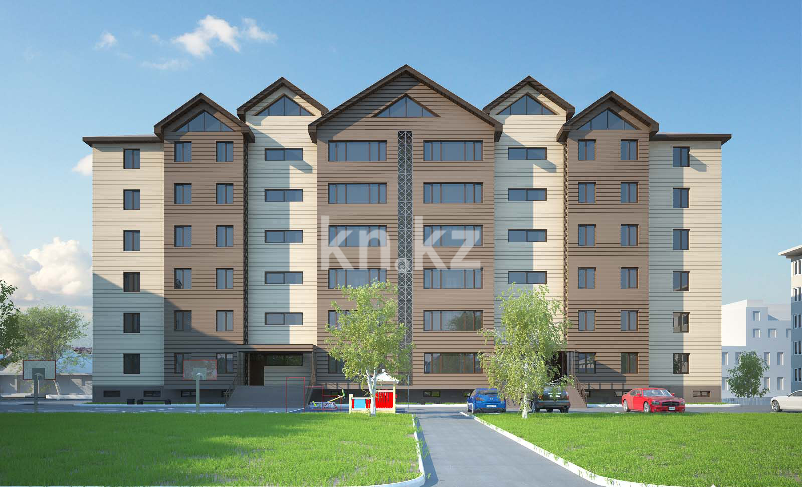Жилой комплекс «Сапфир» в Шымкенте – это шестиэтажное здание с двумя секциями, в каждой из которых по одному подъезду, расположенное рядом с пересечением улиц Рыскулова и Байтурсынова.
