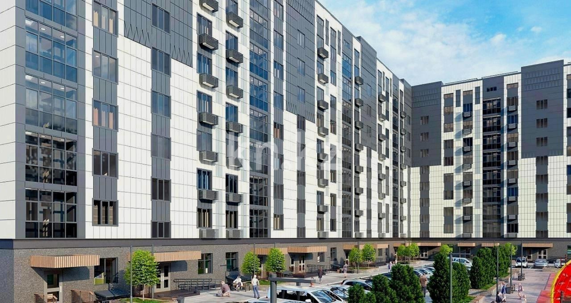 Благоустройство территории ЖК Dostyk включает огороженную зону с охраной и видеонаблюдением, что создает приватную обстановку для жителей.