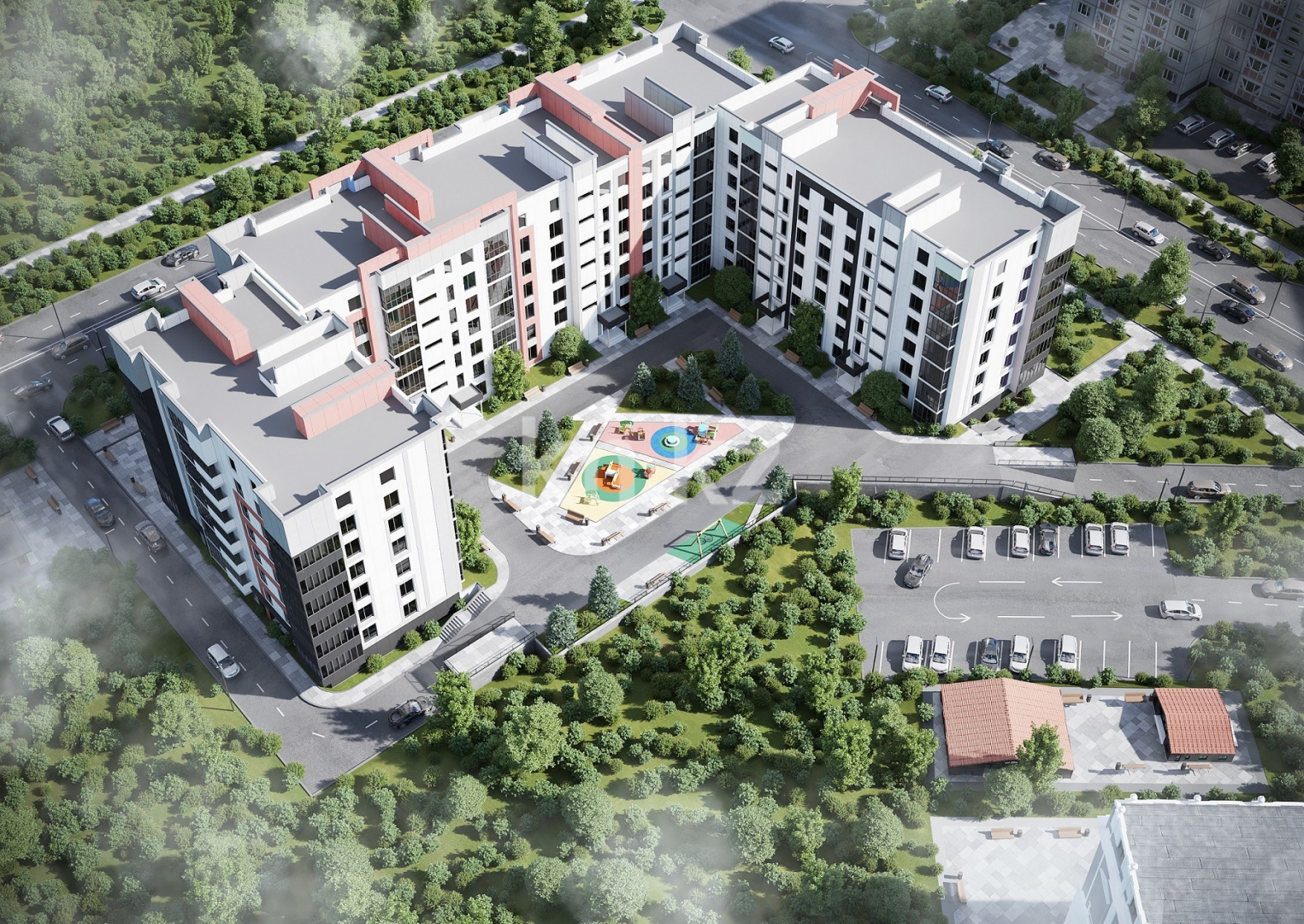 Закрытый двор, видеонаблюдение 24/7 обеспечивает безопасность жильцов комплекса.